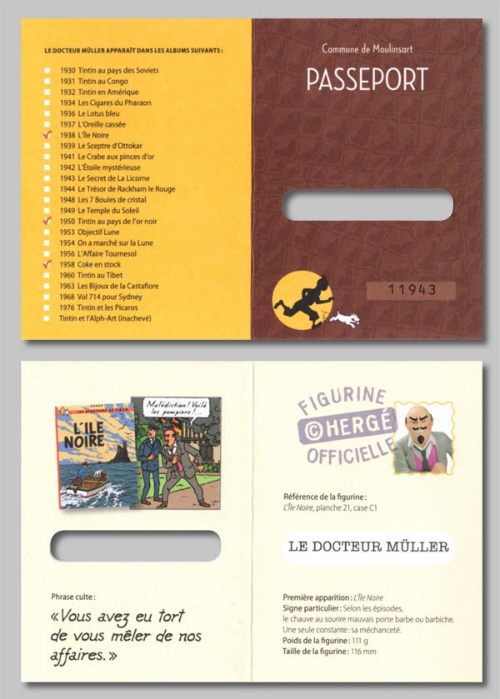 - Version Moulinsart : avec le logo tintin.com sous le socle, sans livret ni passeport