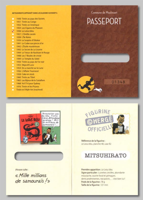 - Version Moulinsart : avec le logo tintin.com sous le socle, sans livret ni passeport