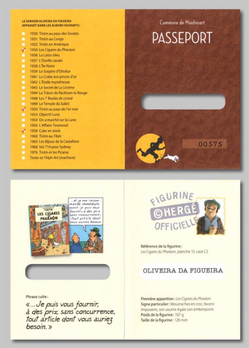 - Version Moulinsart : avec le logo tintin.com sous le socle, sans livret ni passeport