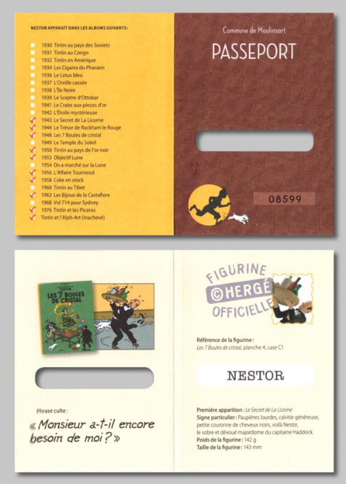 - Version Moulinsart : avec le logo tintin.com sous le socle, sans livret ni passeport