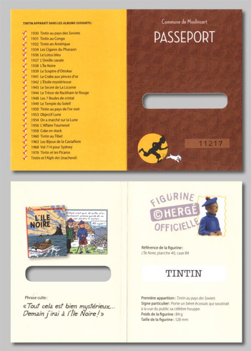 - Version Moulinsart : avec le logo tintin.com sous le socle, sans livret ni passeport
