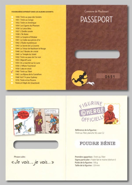 - Version Moulinsart : avec le logo tintin.com sous le socle, sans livret ni passeport