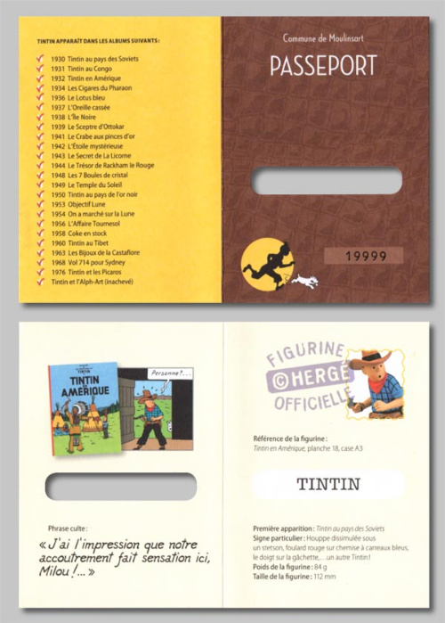- Version Moulinsart : avec le logo tintin.com sous le socle, sans livret ni passeport