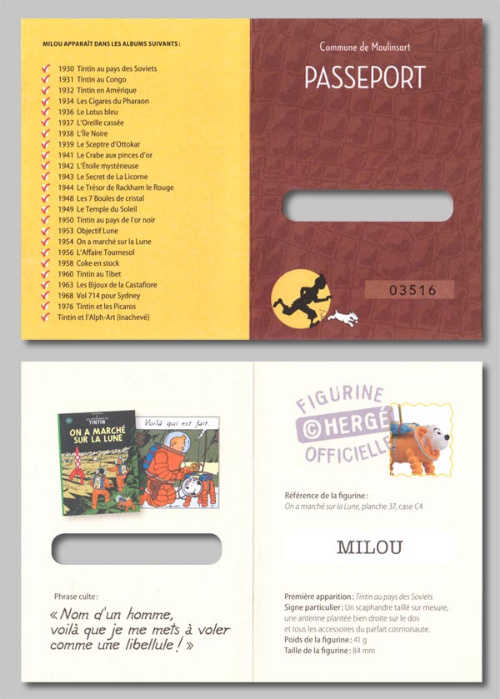 - Version Moulinsart : avec le logo tintin.com sous le socle, sans livret ni passeport