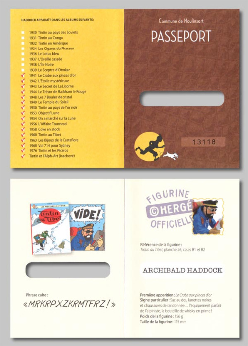 - Version Moulinsart : avec le logo tintin.com sous le socle, sans livret ni passeport