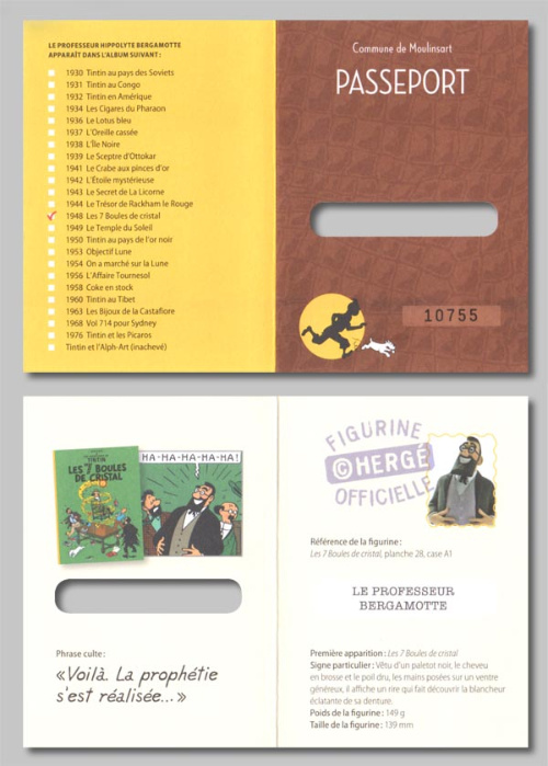 - Version Moulinsart : avec le logo tintin.com sous le socle, sans livret ni passeport