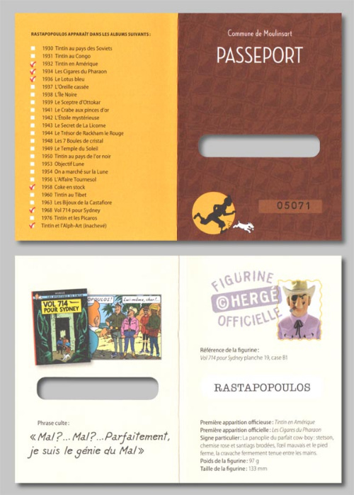 - Version Moulinsart : avec le logo tintin.com sous le socle, sans livret ni passeport