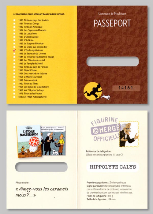 - Version Moulinsart : avec le logo tintin.com sous le socle, sans livret ni passeport