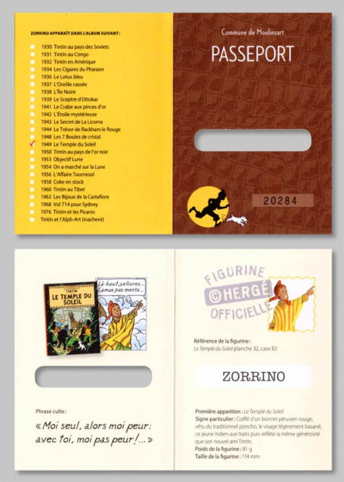- Version Moulinsart : avec le logo tintin.com sous le socle, sans livret ni passeport