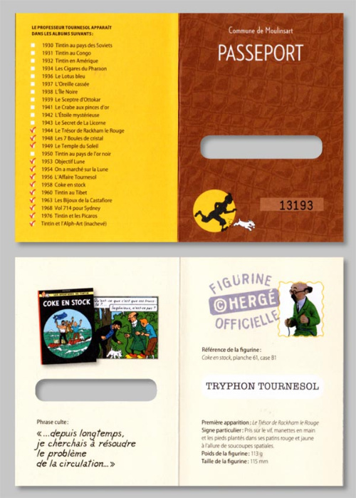 - Version Moulinsart : avec le logo tintin.com sous le socle, sans livret ni passeport