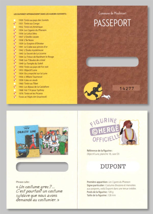 - Version Moulinsart : avec le logo tintin.com sous le socle, sans livret ni passeport