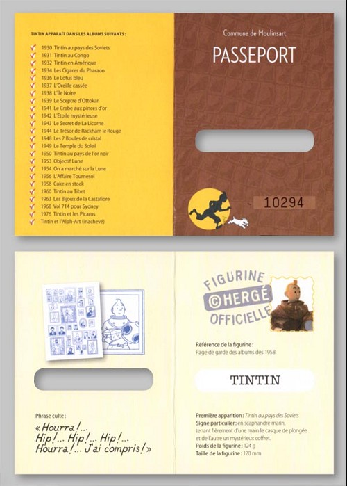 - Version Moulinsart : avec le logo tintin.com sous le socle, sans livret ni passeport