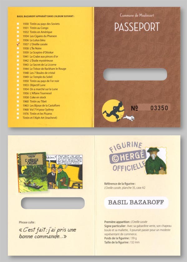 - Version Moulinsart : avec le logo tintin.com sous le socle, sans livret ni passeport