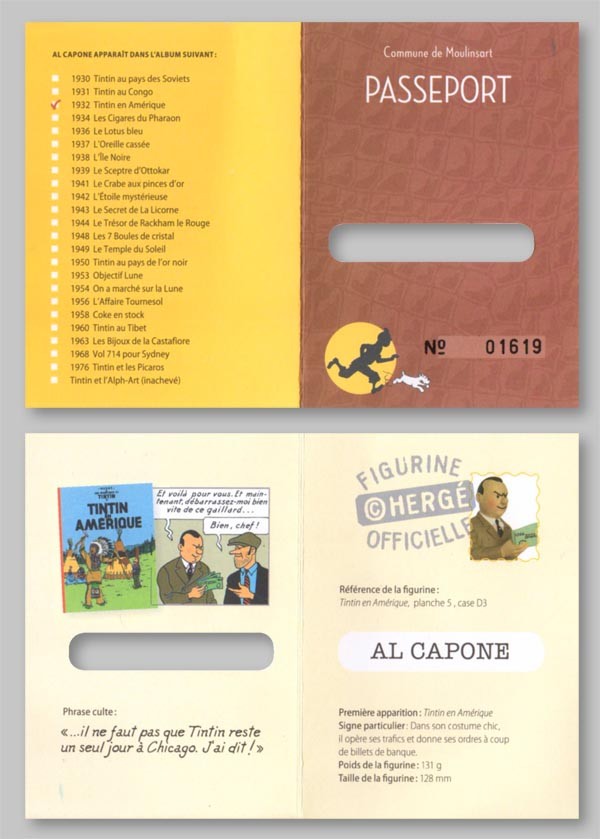 - Version Moulinsart : avec le logo tintin.com sous le socle, sans livret ni passeport