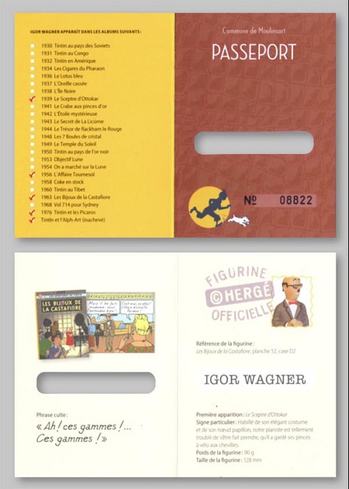- Version Moulinsart : avec le logo tintin.com sous le socle, sans livret ni passeport