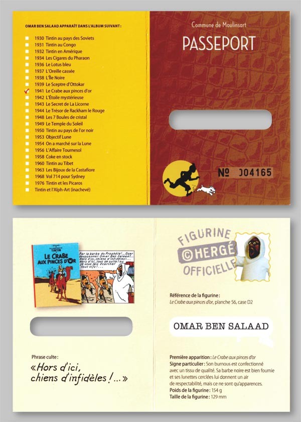 - Version Moulinsart : avec le logo tintin.com sous le socle, sans livret ni passeport