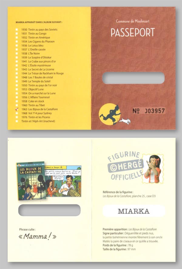 - Version Moulinsart : avec le logo tintin.com sous le socle, sans livret ni passeport