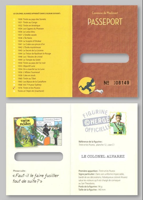 - Version Moulinsart : avec le logo tintin.com sous le socle, sans livret ni passeport