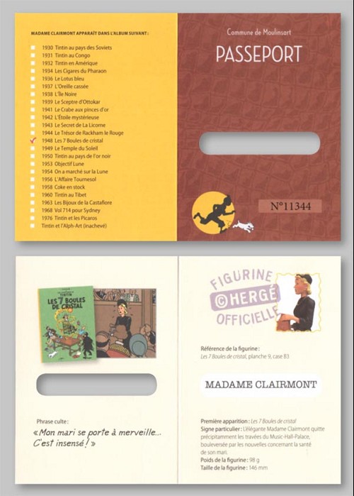 - Version Moulinsart : avec le logo tintin.com sous le socle, sans livret ni passeport