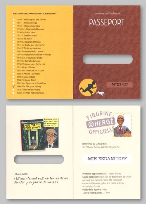 - Version Moulinsart : avec le logo tintin.com sous le socle, sans livret ni passeport