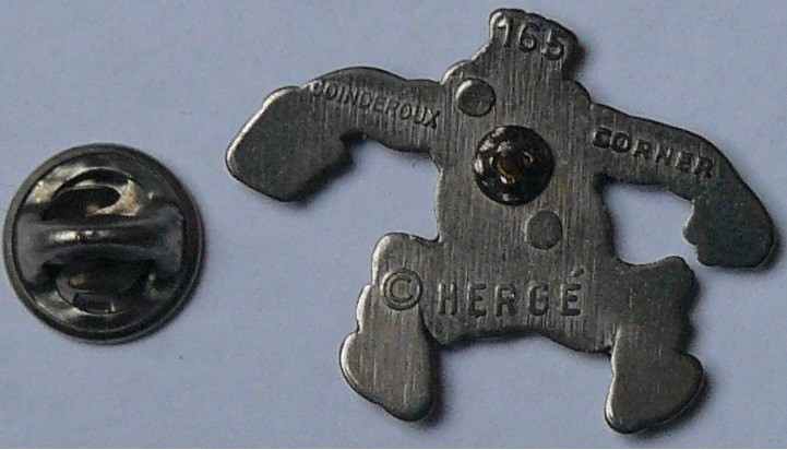 En exemple ci-dessous le dos du n° 53, Tintin et Milou marchant et saluant, signé COINDEROUX PARIS, copyright HERGE EXCLUSIVITE EUROPE LOMBARD 86. On remarquera les deux petits picots sur les pieds de Tintin.