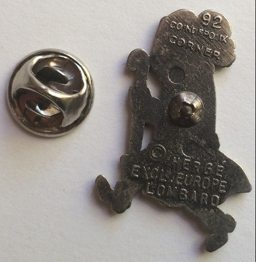 En exemple ci-dessous le dos du n° 53, Tintin et Milou marchant et saluant, signé COINDEROUX PARIS, copyright HERGE EXCLUSIVITE EUROPE LOMBARD 86. On remarquera les deux petits picots sur les pieds de Tintin.