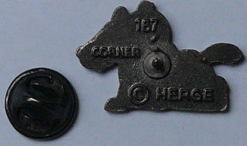 En exemple ci-dessous le dos du n° 53, Tintin et Milou marchant et saluant, signé COINDEROUX PARIS, copyright HERGE EXCLUSIVITE EUROPE LOMBARD 86. On remarquera les deux petits picots sur les pieds de Tintin.