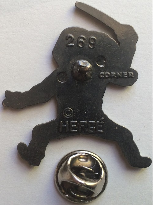 En exemple ci-dessous le dos du n° 53, Tintin et Milou marchant et saluant, signé COINDEROUX PARIS, copyright HERGE EXCLUSIVITE EUROPE LOMBARD 86. On remarquera les deux petits picots sur les pieds de Tintin.