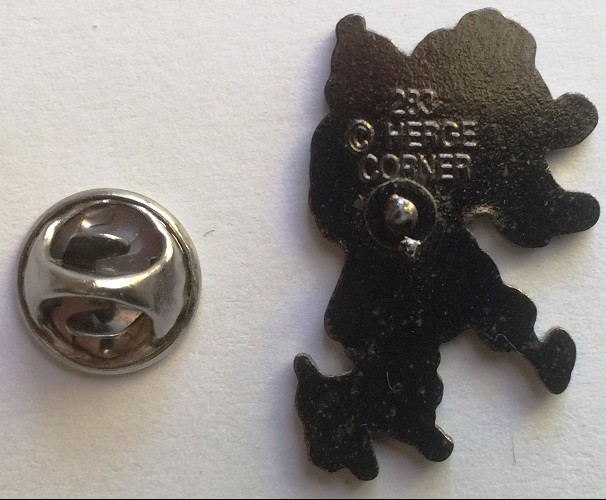 En exemple ci-dessous le dos du n° 53, Tintin et Milou marchant et saluant, signé COINDEROUX PARIS, copyright HERGE EXCLUSIVITE EUROPE LOMBARD 86. On remarquera les deux petits picots sur les pieds de Tintin.