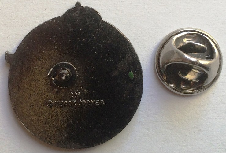 En exemple ci-dessous le dos du n° 53, Tintin et Milou marchant et saluant, signé COINDEROUX PARIS, copyright HERGE EXCLUSIVITE EUROPE LOMBARD 86. On remarquera les deux petits picots sur les pieds de Tintin.