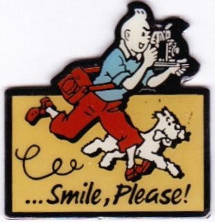 Une série de pin's est sortie en 1992 représentant Tintin et Milou qui courent avec un appareil photo et de très nombreuses variantes de couleurs de fond différentes. Ces pin's étaient distribués par Color Star Benelux. Certains comportent l'inscription "Ne peut être vendu © HERGE Licensing 1992 Action Publicitaire Color Star Bénélux 1992." au dos.
