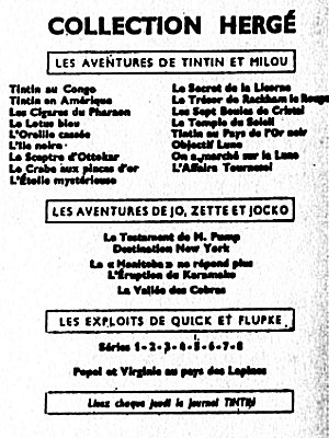 Le Crabe aux Pinces d'Or passe dans Le Soir Jeunesse, dès le 17 octobre 1940, puis dans Le Soir à partir du 23 septembre 1041. Après la guerre, le Temple du Soleil paraît dans le Journal Tintin en Belgique dès le premier numéro, le 26 septembre 1946.