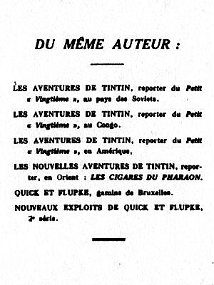 Publication initiale dans le petit "Vingtième" du 8 décembre 1933 au 8 février 1934 à raison de 2 planches hebdomadaires, soit 124 planches parues sous le titre "Les aventures de Tintin, reporter en Orient".