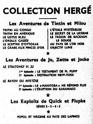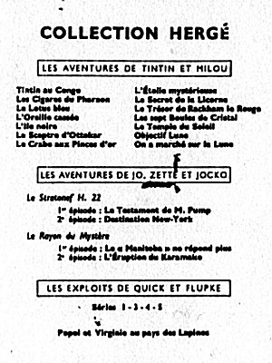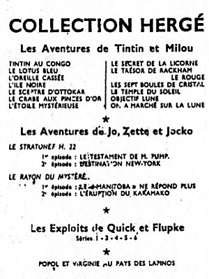 Le Crabe aux Pinces d'Or passe dans Le Soir Jeunesse, dès le 17 octobre 1940, puis dans Le Soir à partir du 23 septembre 1041. Après la guerre, le Temple du Soleil paraît dans le Journal Tintin en Belgique dès le premier numéro, le 26 septembre 1946.