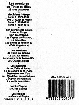 En comparant les encarts de quatrième plat (le dos de l'album), on peut définir à un an près sa date de parution, la particularité de son édition et donc sa cote.