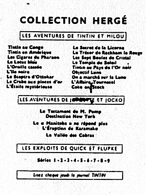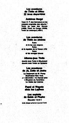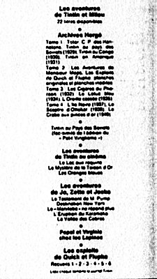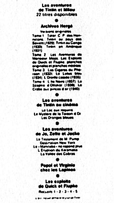 En comparant les encarts de quatrième plat (le dos de l'album), on peut définir à un an près sa date de parution, la particularité de son édition et donc sa cote.