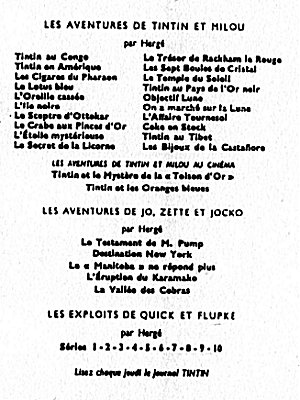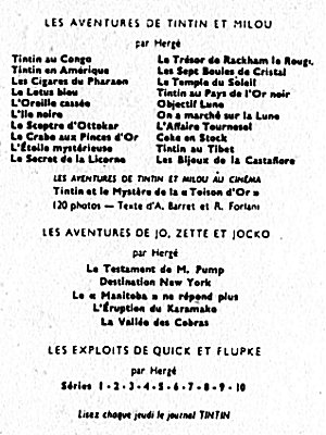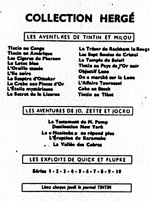 A la naissance du Journal Tintin français, le 28 octobre 1948, c'est la nouvelle version de Tintin au Pays de l'Or Noir qui a les honneurs, suivi d'Objectif Lune et de On a marché sur la Lune, de l'Affaire Tournesol, etc. jusqu'au 13 avril 1976 avec Tintin et les Picaros. La mort de Hergé, le 3 mars 1983, laisse inachevé l'album Tintin et l'Alph-Art, édité trois ans plus tard, le 8 octobre 1986.