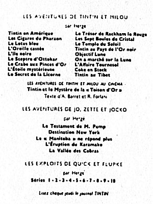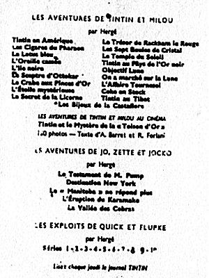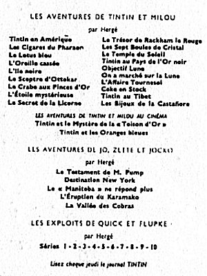 Le Crabe aux Pinces d'Or passe dans Le Soir Jeunesse, dès le 17 octobre 1940, puis dans Le Soir à partir du 23 septembre 1041. Après la guerre, le Temple du Soleil paraît dans le Journal Tintin en Belgique dès le premier numéro, le 26 septembre 1946.