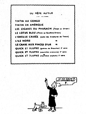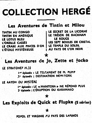 Le Crabe aux Pinces d'Or passe dans Le Soir Jeunesse, dès le 17 octobre 1940, puis dans Le Soir à partir du 23 septembre 1041. Après la guerre, le Temple du Soleil paraît dans le Journal Tintin en Belgique dès le premier numéro, le 26 septembre 1946.