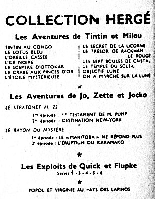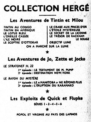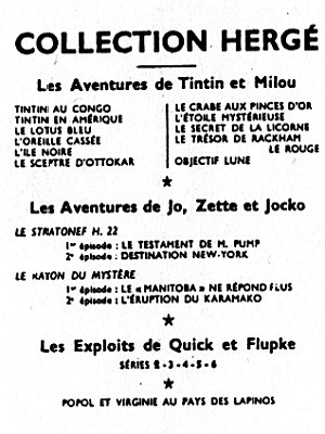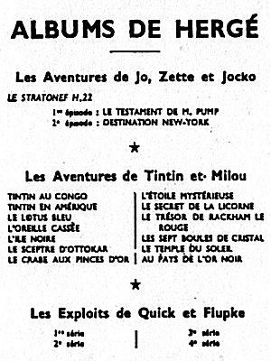 Le Crabe aux Pinces d'Or passe dans Le Soir Jeunesse, dès le 17 octobre 1940, puis dans Le Soir à partir du 23 septembre 1041. Après la guerre, le Temple du Soleil paraît dans le Journal Tintin en Belgique dès le premier numéro, le 26 septembre 1946.