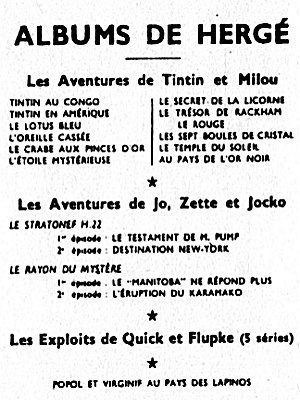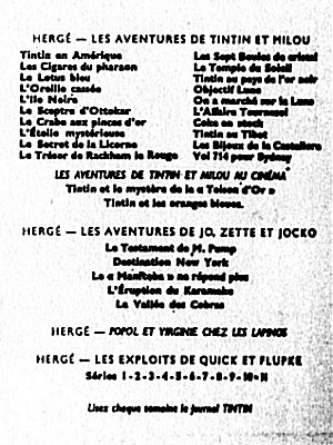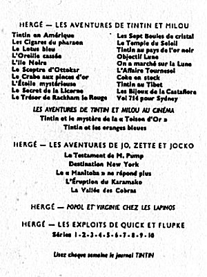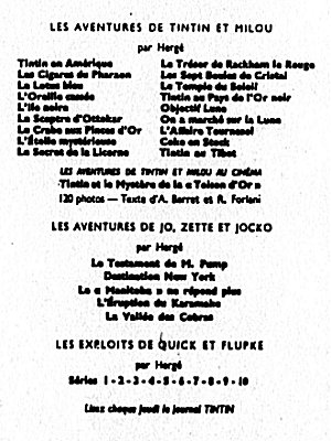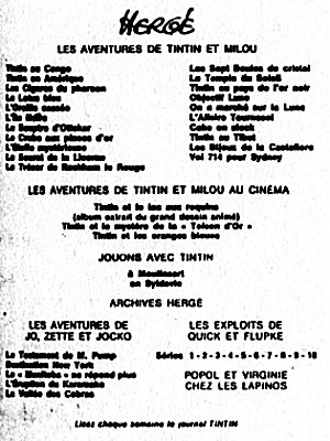 A la naissance du Journal Tintin français, le 28 octobre 1948, c'est la nouvelle version de Tintin au Pays de l'Or Noir qui a les honneurs, suivi d'Objectif Lune et de On a marché sur la Lune, de l'Affaire Tournesol, etc. jusqu'au 13 avril 1976 avec Tintin et les Picaros. La mort de Hergé, le 3 mars 1983, laisse inachevé l'album Tintin et l'Alph-Art, édité trois ans plus tard, le 8 octobre 1986.