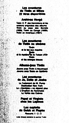 En comparant les encarts de quatrième plat (le dos de l'album), on peut définir à un an près sa date de parution, la particularité de son édition et donc sa cote.