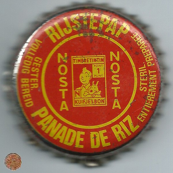 Capsule de bouteille de panade de riz Nosta, avec 1 point Tintin
